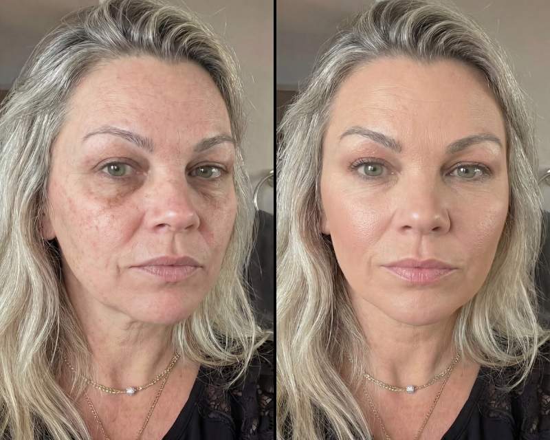 "I'm 43 with redness and fine lines showing up more. Most foundations are too heavy, look like a mask, turn orange, and transfer everywhere. This one is lightweight, covers my redness, doesn't settle into my wrinkles, and stays true to my skin tone all day. It just looks like my skin but evened out. No heavy feeling, no orange tint."